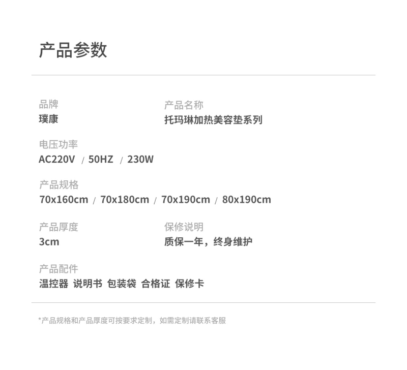 托玛琳加热床垫系列 pkcd-tml602