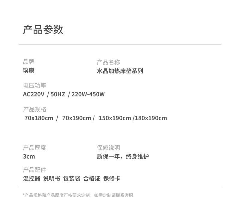 水晶加热床垫系列 pkcd-sj001